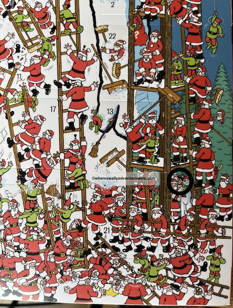 Look at the bottom right hand corner, under the wooden tower, Wally is smiling away sandwiched inbetween a snowman and a santa